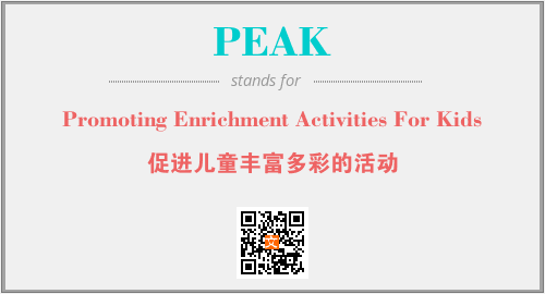 以上为Promoting Enrichment Activities For Kids英文缩略词PEAK的中文解释,以及该英文缩写在英语的流行度、分类和应用领域方面的信息。