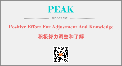 以上为Positive Effort For Adjustment And Knowledge英文缩略词PEAK的中文解释,以及该英文缩写在英语的流行度、分类和应用领域方面的信息。