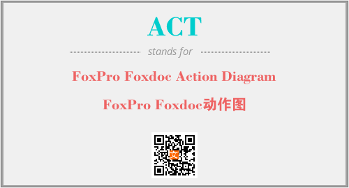 上述内容是“FoxPro Foxdoc Action Diagram”作为“ACT”的缩写,解释为“FoxPro Foxdoc动作图”时的信息,以及英文缩略词ACT所代表的英文单词,其对应的中文拼音、详细解释以及在英文中的流行度和相关分类、应用领域及应用示例等。
