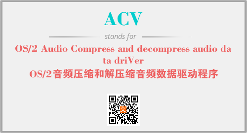 英文缩略词“ACV”经常作为“OS/2 Audio Compress and decompress audio data driVer”的英文缩写来使用,中文表示:“OS/2音频压缩和解压缩音频数据驱动程序”。本文将详细介绍英文缩写词ACV所代表英文单词,其对应的中文拼音、详细解释以及在英语中的流行度。此外,还有关于缩略词ACV的分类、应用领域及相关应用示例等。
