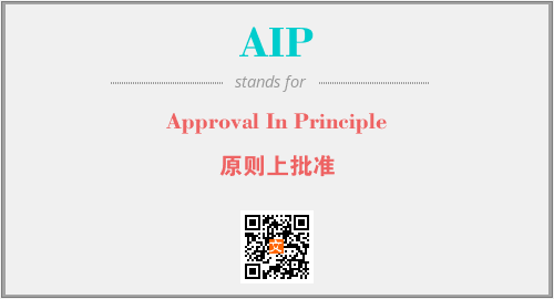上述内容是“Approval In Principle”作为“AIP”的缩写,解释为“原则上批准”时的信息,以及英文缩略词AIP所代表的英文单词,其对应的中文拼音、详细解释以及在英文中的流行度和相关分类、应用领域及应用示例等。
