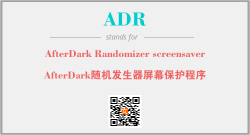 上述内容是“AfterDark Randomizer screensaver”作为“ADR”的缩写,解释为“AfterDark随机发生器屏幕保护程序”时的信息,以及英文缩略词ADR所代表的英文单词,其对应的中文拼音、详细解释以及在英文中的流行度和相关分类、应用领域及应用示例等。