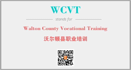 上述内容是“Walton County Vocational Training”作为“WCVT”的缩写,解释为“沃尔顿县职业培训”时的信息,以及英文缩略词WCVT所代表的英文单词,其对应的中文拼音、详细解释以及在英文中的流行度和相关分类、应用领域及应用示例等。