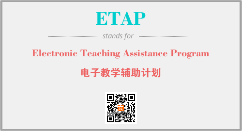 英文缩略词“ETAP”经常作为“Electronic Teaching Assistance Program”的英文缩写来使用,中文表示:“电子教学辅助计划”。本文将详细介绍英文缩写词ETAP所代表英文单词,其对应的中文拼音、详细解释以及在英语中的流行度。此外,还有关于缩略词ETAP的分类、应用领域及相关应用示例等。