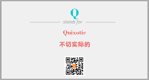 上述内容是“Quixotic”作为“Q”的缩写,解释为“不切实际的”时的信息,以及英文缩略词Q所代表的英文单词,其对应的中文拼音、详细解释以及在英文中的流行度和相关分类、应用领域及应用示例等。