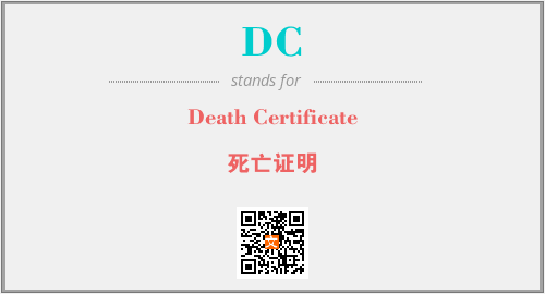 上述内容是“Death Certificate”作为“DC”的缩写,解释为“死亡证明”时的信息,以及英文缩略词DC所代表的英文单词,其对应的中文拼音、详细解释以及在英文中的流行度和相关分类、应用领域及应用示例等。