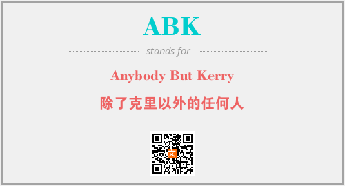 英文缩略词“ABK”经常作为“Anybody But Kerry”的英文缩写来使用,中文表示:“除了克里以外的任何人”。本文将详细介绍英文缩写词ABK所代表英文单词,其对应的中文拼音、详细解释以及在英语中的流行度。此外,还有关于缩略词ABK的分类、应用领域及相关应用示例等。