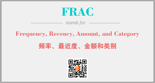 上述内容是“Frequency, Recency, Amount, and Category”作为“FRAC”的缩写,解释为“频率、最近度、金额和类别”时的信息,以及英文缩略词FRAC所代表的英文单词,其对应的中文拼音、详细解释以及在英文中的流行度和相关分类、应用领域及应用示例等。