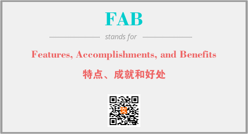 英文缩略词“FAB”经常作为“Features, Accomplishments, and Benefits”的英文缩写来使用,中文表示:“特点、成就和好处”。本文将详细介绍英文缩写词FAB所代表英文单词,其对应的中文拼音、详细解释以及在英语中的流行度。此外,还有关于缩略词FAB的分类、应用领域及相关应用示例等。