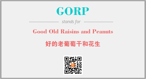 以上为Good Old Raisins and Peanuts英文缩略词GORP的中文解释,以及该英文缩写在英语的流行度、分类和应用领域方面的信息。