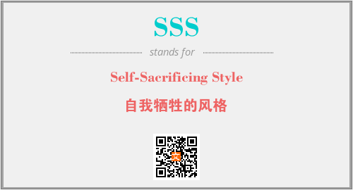 上述内容是“Self-Sacrificing Style”作为“SSS”的缩写,解释为“自我牺牲的风格”时的信息,以及英文缩略词SSS所代表的英文单词,其对应的中文拼音、详细解释以及在英文中的流行度和相关分类、应用领域及应用示例等。