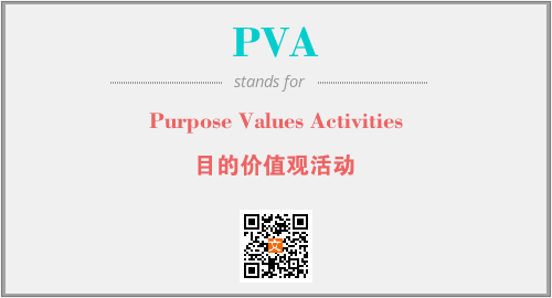上述内容是“Purpose Values Activities”作为“PVA”的缩写,解释为“目的价值观活动”时的信息,以及英文缩略词PVA所代表的英文单词,其对应的中文拼音、详细解释以及在英文中的流行度和相关分类、应用领域及应用示例等。