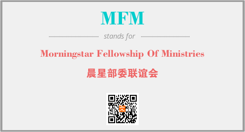上述内容是“Morningstar Fellowship Of Ministries”作为“MFM”的缩写,解释为“晨星部委联谊会”时的信息,以及英文缩略词MFM所代表的英文单词,其对应的中文拼音、详细解释以及在英文中的流行度和相关分类、应用领域及应用示例等。