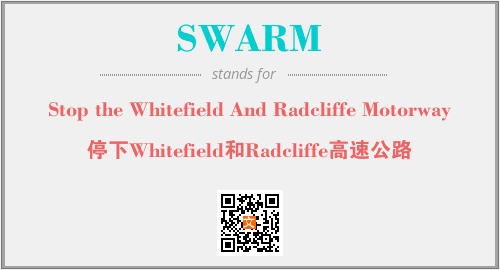 上述内容是“Stop the Whitefield And Radcliffe Motorway”作为“SWARM”的缩写,解释为“停下Whitefield和Radcliffe高速公路”时的信息,以及英文缩略词SWARM所代表的英文单词,其对应的中文拼音、详细解释以及在英文中的流行度和相关分类、应用领域及应用示例等。