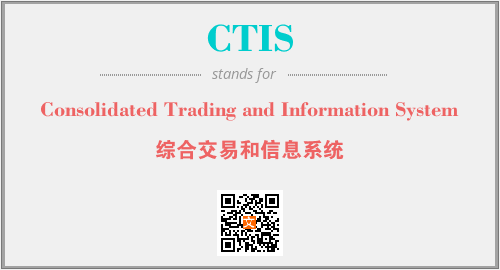 英文缩略词“CTIS”经常作为“Consolidated Trading and Information System”的英文缩写来使用,中文表示:“综合交易和信息系统”。本文将详细介绍英文缩写词CTIS所代表英文单词,其对应的中文拼音、详细解释以及在英语中的流行度。此外,还有关于缩略词CTIS的分类、应用领域及相关应用示例等。