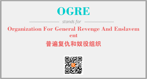 上述内容是“Organization For General Revenge And Enslavement”作为“OGRE”的缩写,解释为“普遍复仇和奴役组织”时的信息,以及英文缩略词OGRE所代表的英文单词,其对应的中文拼音、详细解释以及在英文中的流行度和相关分类、应用领域及应用示例等。