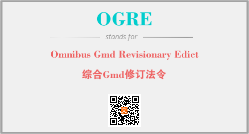 上述内容是“Omnibus Gmd Revisionary Edict”作为“OGRE”的缩写,解释为“综合Gmd修订法令”时的信息,以及英文缩略词OGRE所代表的英文单词,其对应的中文拼音、详细解释以及在英文中的流行度和相关分类、应用领域及应用示例等。