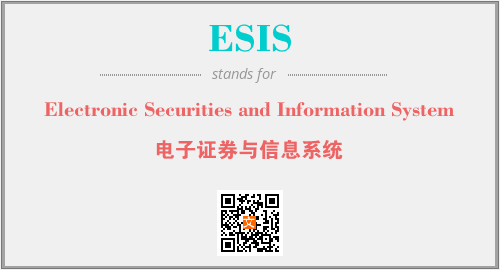 英文缩略词“ESIS”经常作为“Electronic Securities and Information System”的英文缩写来使用,中文表示:“电子证券与信息系统”。本文将详细介绍英文缩写词ESIS所代表英文单词,其对应的中文拼音、详细解释以及在英语中的流行度。此外,还有关于缩略词ESIS的分类、应用领域及相关应用示例等。