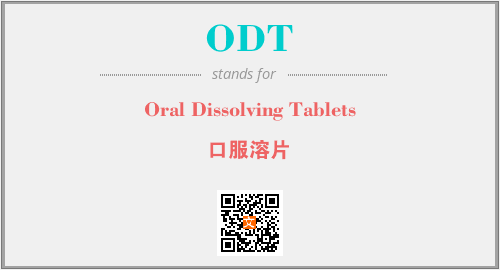 英文缩略词“ODT”经常作为“Oral Dissolving Tablets”的英文缩写来使用,中文表示:“口服溶片”。本文将详细介绍英文缩写词ODT所代表英文单词,其对应的中文拼音、详细解释以及在英语中的流行度。此外,还有关于缩略词ODT的分类、应用领域及相关应用示例等。