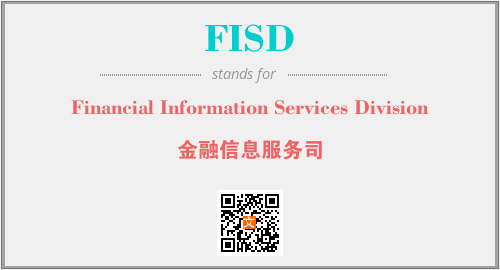 英文缩略词“FISD”经常作为“Financial Information Services Division”的英文缩写来使用,中文表示:“金融信息服务司”。本文将详细介绍英文缩写词FISD所代表英文单词,其对应的中文拼音、详细解释以及在英语中的流行度。此外,还有关于缩略词FISD的分类、应用领域及相关应用示例等。
