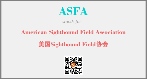 上述内容是“American Sighthound Field Association”作为“ASFA”的缩写,解释为“美国Sighthound Field协会”时的信息,以及英文缩略词ASFA所代表的英文单词,其对应的中文拼音、详细解释以及在英文中的流行度和相关分类、应用领域及应用示例等。