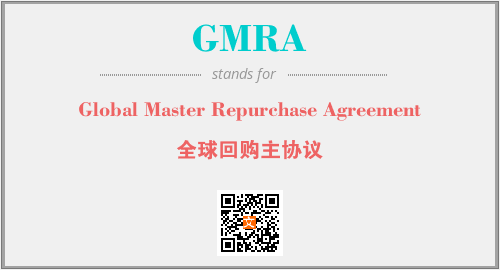英文缩略词“GMRA”经常作为“Global Master Repurchase Agreement”的英文缩写来使用,中文表示:“全球回购主协议”。本文将详细介绍英文缩写词GMRA所代表英文单词,其对应的中文拼音、详细解释以及在英语中的流行度。此外,还有关于缩略词GMRA的分类、应用领域及相关应用示例等。