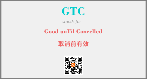 英文缩略词“GTC”经常作为“Good unTil Cancelled”的英文缩写来使用,中文表示:“取消前有效”。本文将详细介绍英文缩写词GTC所代表英文单词,其对应的中文拼音、详细解释以及在英语中的流行度。此外,还有关于缩略词GTC的分类、应用领域及相关应用示例等。