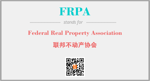 上述内容是“Federal Real Property Association”作为“FRPA”的缩写,解释为“联邦不动产协会”时的信息,以及英文缩略词FRPA所代表的英文单词,其对应的中文拼音、详细解释以及在英文中的流行度和相关分类、应用领域及应用示例等。