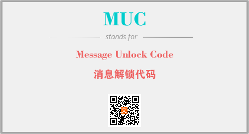 英文缩略词“MUC”经常作为“Message Unlock Code”的英文缩写来使用,中文表示:“消息解锁代码”。本文将详细介绍英文缩写词MUC所代表英文单词,其对应的中文拼音、详细解释以及在英语中的流行度。此外,还有关于缩略词MUC的分类、应用领域及相关应用示例等。