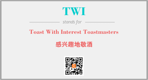 英文缩略词“TWI”经常作为“Toast With Interest Toastmasters”的英文缩写来使用,中文表示:“感兴趣地敬酒”。本文将详细介绍英文缩写词TWI所代表英文单词,其对应的中文拼音、详细解释以及在英语中的流行度。此外,还有关于缩略词TWI的分类、应用领域及相关应用示例等。