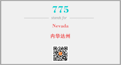 上述内容是“Nevada”作为“775”的缩写,解释为“内华达州”时的信息,以及英文缩略词775所代表的英文单词,其对应的中文拼音、详细解释以及在英文中的流行度和相关分类、应用领域及应用示例等。