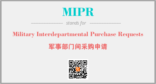 英文缩略词“MIPR”经常作为“Military Interdepartmental Purchase Requests”的英文缩写来使用,中文表示:“军事部门间采购申请”。本文将详细介绍英文缩写词MIPR所代表英文单词,其对应的中文拼音、详细解释以及在英语中的流行度。此外,还有关于缩略词MIPR的分类、应用领域及相关应用示例等。