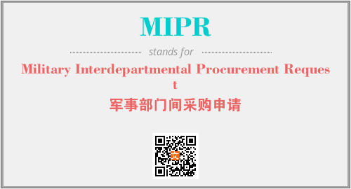 英文缩略词“MIPR”经常作为“Military Interdepartmental Procurement Request”的英文缩写来使用,中文表示:“军事部门间采购申请”。本文将详细介绍英文缩写词MIPR所代表英文单词,其对应的中文拼音、详细解释以及在英语中的流行度。此外,还有关于缩略词MIPR的分类、应用领域及相关应用示例等。