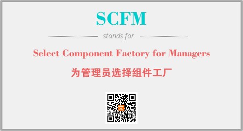 上述内容是“Select Component Factory for Managers”作为“SCFM”的缩写,解释为“为管理员选择组件工厂”时的信息,以及英文缩略词SCFM所代表的英文单词,其对应的中文拼音、详细解释以及在英文中的流行度和相关分类、应用领域及应用示例等。