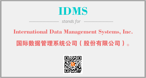 上述内容是“International Data Management Systems, Inc.”作为“IDMS”的缩写,解释为“国际数据管理系统公司(股份有限公司)。”时的信息,以及英文缩略词IDMS所代表的英文单词,其对应的中文拼音、详细解释以及在英文中的流行度和相关分类、应用领域及应用示例等。