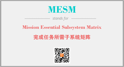上述内容是“Mission Essential Subsystem Matrix”作为“MESM”的缩写,解释为“完成任务所需子系统矩阵”时的信息,以及英文缩略词MESM所代表的英文单词,其对应的中文拼音、详细解释以及在英文中的流行度和相关分类、应用领域及应用示例等。