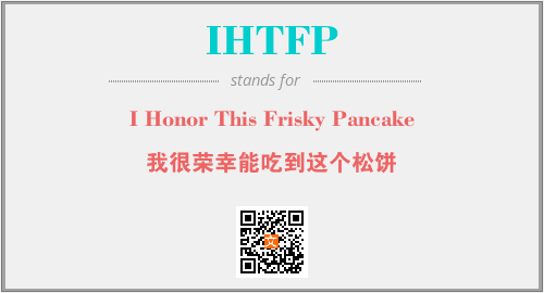 上述内容是“I Honor This Frisky Pancake”作为“IHTFP”的缩写,解释为“我很荣幸能吃到这个松饼”时的信息,以及英文缩略词IHTFP所代表的英文单词,其对应的中文拼音、详细解释以及在英文中的流行度和相关分类、应用领域及应用示例等。