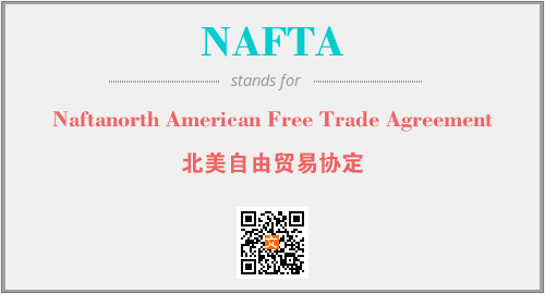 上述内容是“Naftanorth American Free Trade Agreement”作为“NAFTA”的缩写,解释为“北美自由贸易协定”时的信息,以及英文缩略词NAFTA所代表的英文单词,其对应的中文拼音、详细解释以及在英文中的流行度和相关分类、应用领域及应用示例等。