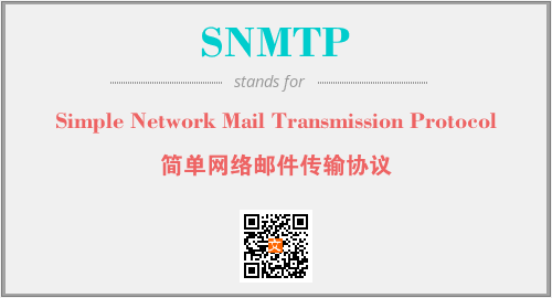 英文缩略词“SNMTP”经常作为“Simple Network Mail Transmission Protocol”的英文缩写来使用,中文表示:“简单网络邮件传输协议”。本文将详细介绍英文缩写词SNMTP所代表英文单词,其对应的中文拼音、详细解释以及在英语中的流行度。此外,还有关于缩略词SNMTP的分类、应用领域及相关应用示例等。
