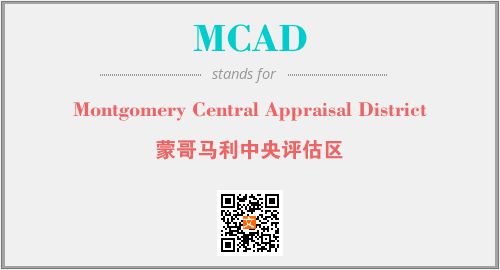 上述内容是“Montgomery Central Appraisal District”作为“MCAD”的缩写,解释为“蒙哥马利中央评估区”时的信息,以及英文缩略词MCAD所代表的英文单词,其对应的中文拼音、详细解释以及在英文中的流行度和相关分类、应用领域及应用示例等。