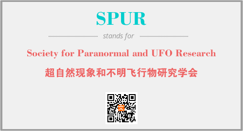 上述内容是“Society for Paranormal and UFO Research”作为“SPUR”的缩写,解释为“超自然现象和不明飞行物研究学会”时的信息,以及英文缩略词SPUR所代表的英文单词,其对应的中文拼音、详细解释以及在英文中的流行度和相关分类、应用领域及应用示例等。