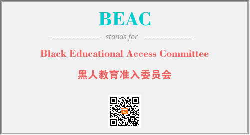上述内容是“Black Educational Access Committee”作为“BEAC”的缩写,解释为“黑人教育准入委员会”时的信息,以及英文缩略词BEAC所代表的英文单词,其对应的中文拼音、详细解释以及在英文中的流行度和相关分类、应用领域及应用示例等。