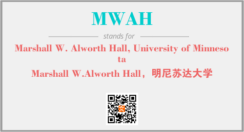 上述内容是“Marshall W. Alworth Hall, University of Minnesota”作为“MWAH”的缩写,解释为“Marshall W.Alworth Hall,明尼苏达大学”时的信息,以及英文缩略词MWAH所代表的英文单词,其对应的中文拼音、详细解释以及在英文中的流行度和相关分类、应用领域及应用示例等。