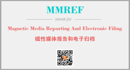 上述内容是“Magnetic Media Reporting And Electronic Filing”作为“MMREF”的缩写,解释为“磁性媒体报告和电子归档”时的信息,以及英文缩略词MMREF所代表的英文单词,其对应的中文拼音、详细解释以及在英文中的流行度和相关分类、应用领域及应用示例等。