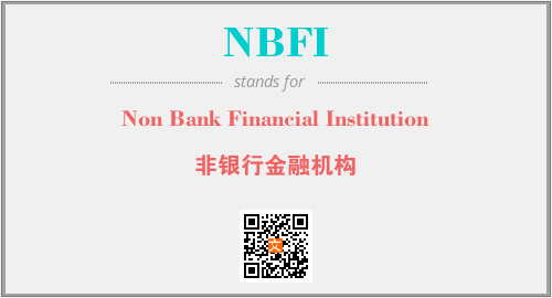 上述内容是“Non Bank Financial Institution”作为“NBFI”的缩写,解释为“非银行金融机构”时的信息,以及英文缩略词NBFI所代表的英文单词,其对应的中文拼音、详细解释以及在英文中的流行度和相关分类、应用领域及应用示例等。