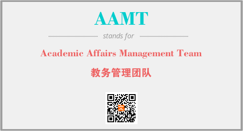 上述内容是“Academic Affairs Management Team”作为“AAMT”的缩写,解释为“教务管理团队”时的信息,以及英文缩略词AAMT所代表的英文单词,其对应的中文拼音、详细解释以及在英文中的流行度和相关分类、应用领域及应用示例等。