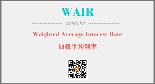 上述内容是“Weighted Average Interest Rate”作为“WAIR”的缩写,解释为“加权平均利率”时的信息,以及英文缩略词WAIR所代表的英文单词,其对应的中文拼音、详细解释以及在英文中的流行度和相关分类、应用领域及应用示例等。