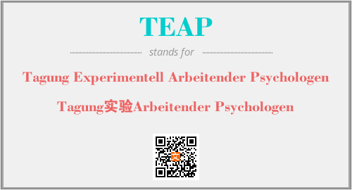 以上为Tagung Experimentell Arbeitender Psychologen英文缩略词TEAP的中文解释,以及该英文缩写在英语的流行度、分类和应用领域方面的信息。