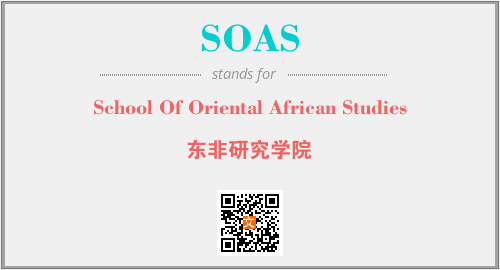 上述内容是“School Of Oriental African Studies”作为“SOAS”的缩写,解释为“东非研究学院”时的信息,以及英文缩略词SOAS所代表的英文单词,其对应的中文拼音、详细解释以及在英文中的流行度和相关分类、应用领域及应用示例等。