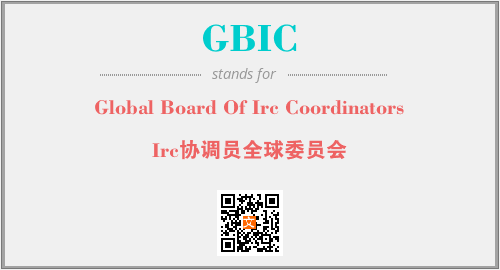 英文缩略词“GBIC”经常作为“Global Board Of Irc Coordinators”的英文缩写来使用,中文表示:“Irc协调员全球委员会”。本文将详细介绍英文缩写词GBIC所代表英文单词,其对应的中文拼音、详细解释以及在英语中的流行度。此外,还有关于缩略词GBIC的分类、应用领域及相关应用示例等。